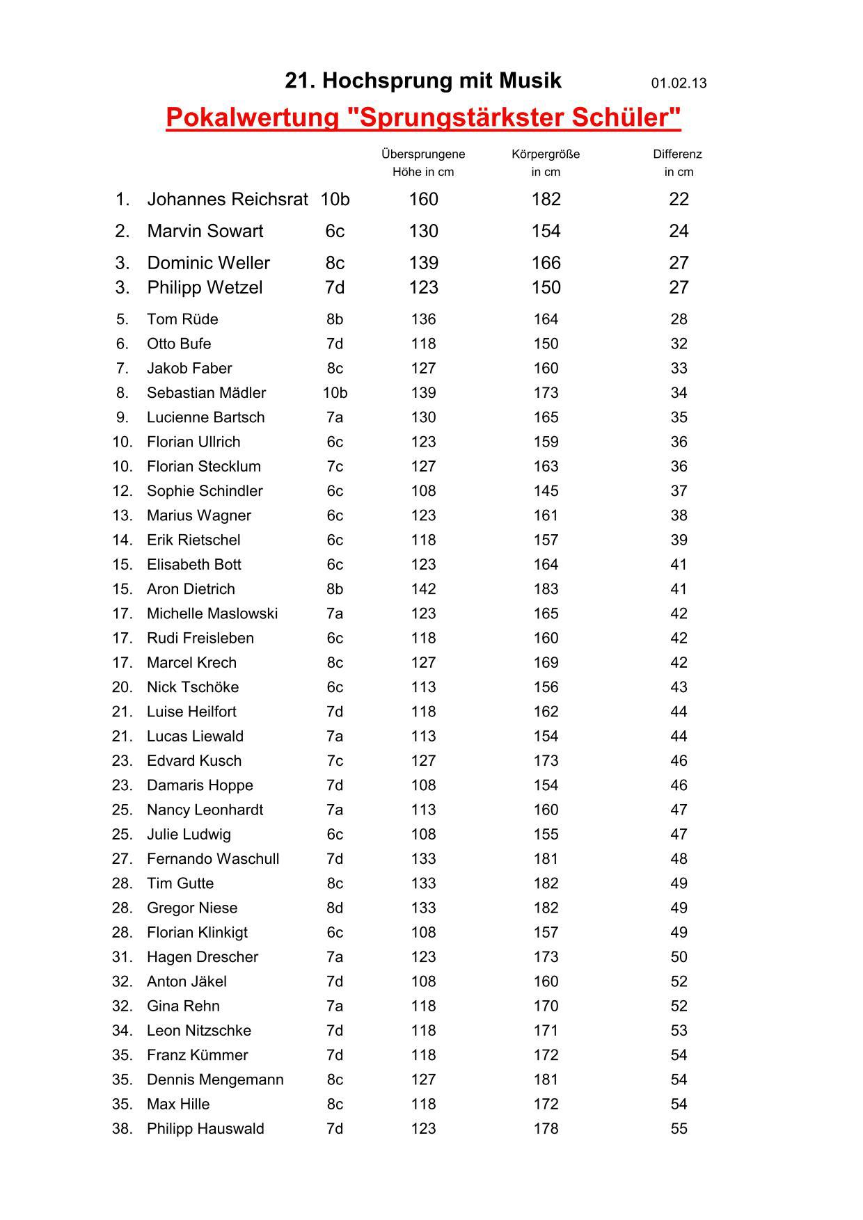 Somit qualifizierten sich für das Landesfianle am 12.03.13 in Zwickau: